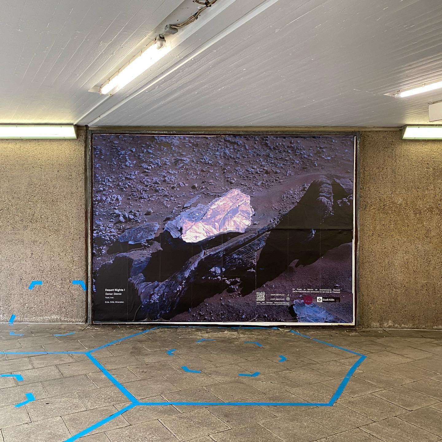 The project "OPEN CALL: Billboard Spaces" was a pragmatic response to the closures of cultural institutions due to the COVID-19 pandemic. Instead of the Ebertplatz passages being dormant during this period, as many artistic expressions as possible were brought into the outdoor space to allow pedestrians and transit visitors the opportunity to see something and to correspond to the character of the passages even during this time. The design of the billboard walls was a part of this. From October 2020 to January 2022, as part of a collaboration with Ströer Media GmbH, we were able to fill all unbooked billboard spaces in the Ebertplatz passages with art. There was an open call for billboard designs until mid-May 2021. These submissions were subsequently voted on in the design working group and will be gradually printed until January 2022.